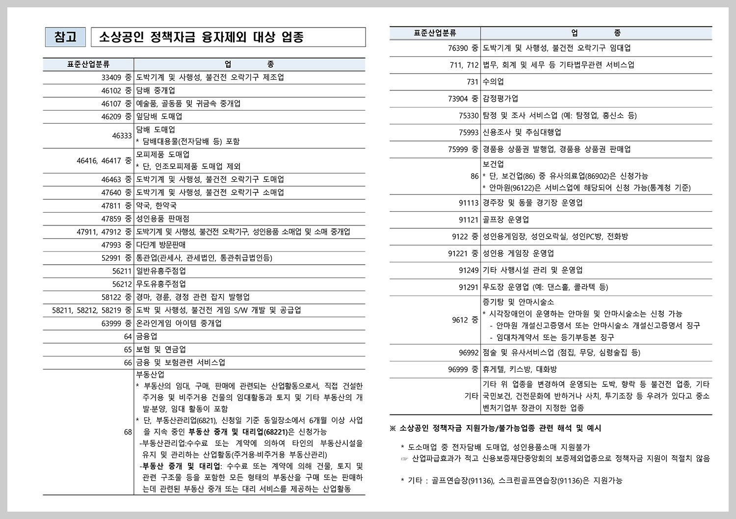 <주의사항!! 제외되는 업종을 알아보겠습니다!! >