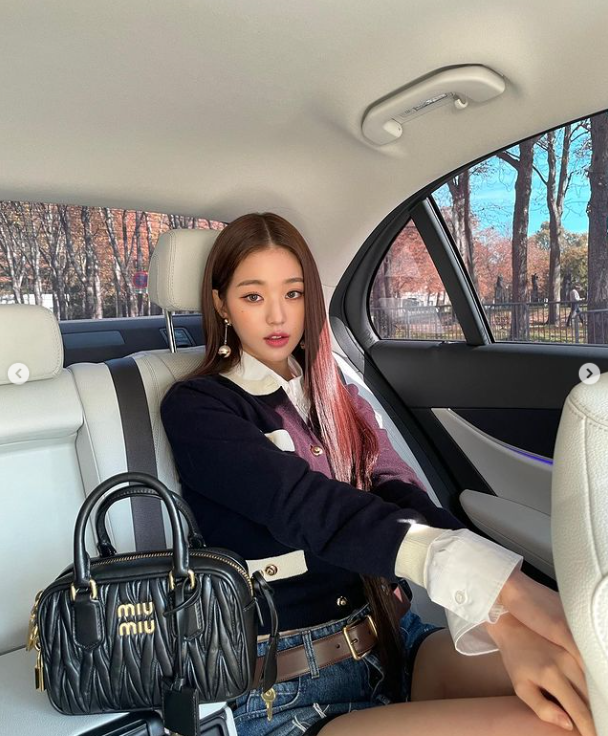 장원영은 짧은 데님 팬츠와 단정한 니트 가디건을 매치하고, 긴 생머리를 늘어트려 청순미를 강조하였습니다.